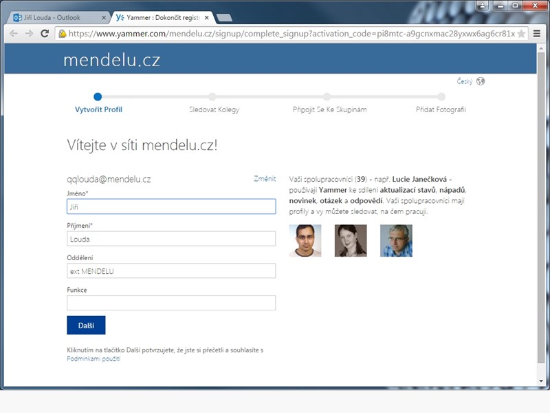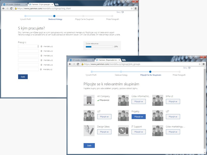 1. První připojení do podnikové sociální sítě