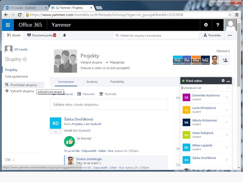 6. Můžete si přidat spolupracovníky a připojit se ke skupinám o které máte zájem.